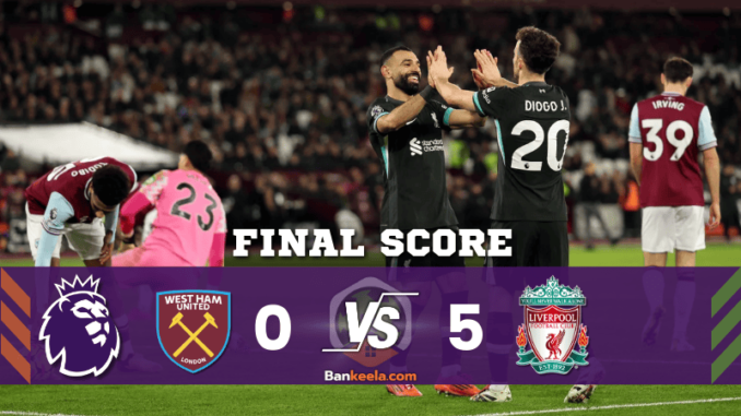 นาทีที่ 95: จบเกม ลิเวอร์พูลบุกมาชนะเวสต์แฮม ยูไนเต็ด 5-0 ด้วยฟอร์มที่ยอดเยี่ยม