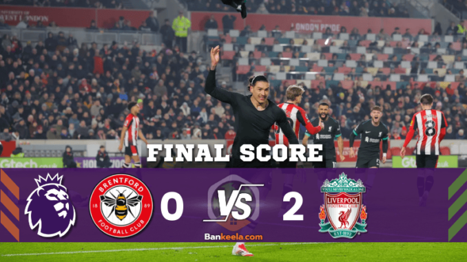 นาทีที่ 96: กรรมการเป่านกหวีดจบเกม ลิเวอร์พูลเอาชนะเบรนท์ฟอร์ด 2-0 คว้าสามแต้มไปครอง