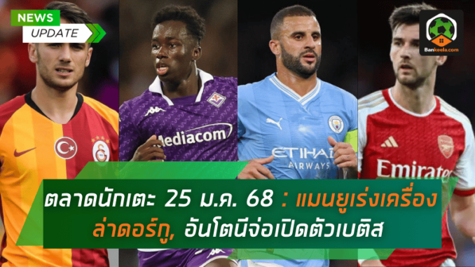 ความเคลื่อนไหวใน ตลาดซื้อขายนักเตะ ยังคงร้อนแรงขึ้นเรื่อย ๆ โดยเฉพาะใน พรีเมียร์ลีก และ ลีกยุโรปชั้นนำ ล่าสุด แมนเชสเตอร์ ยูไนเต็ด เดินหน้าทาบทาม แพทริค ดอร์กู อีกรอบหลังจากถูก เลชเช่ ปฏิเสธ ขณะที่ อันโตนี เตรียมเปิดตัวกับ เรอัล เบติส ด้าน จอน ดูราน กำลังพิจารณาโอกาสย้ายไปค้าแข้งที่ ซาอุดีอาระเบีย ท่ามกลางความสนใจจากหลายทีมยักษ์ใหญ่