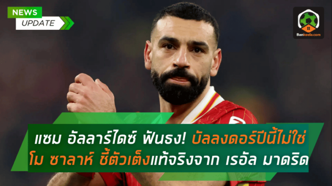 แซม อัลลาร์ไดซ์ อดีตผู้จัดการทีมชาติอังกฤษ ออกโรงแสดงความเห็นอย่างชัดเจนว่า โมฮาเหม็ด ซาลาห์ กองหน้าตัวเก่งของ ลิเวอร์พูล อาจไม่มีสิทธิ์คว้ารางวัล บัลลงดอร์ ในปีนี้ แม้ว่าจะโชว์ฟอร์มสุดร้อนแรงก็ตาม โดยให้เหตุผลถึงปัญหาภายในที่เกิดขึ้นเมื่อปีที่แล้ว และชี้ว่าตัวเต็งที่แท้จริงอาจเป็นแข้งจาก เรอัล มาดริด