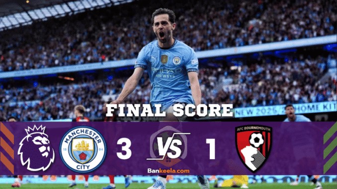 ผลบอลสด จบที่ แมนเชสเตอร์ ซิตี้ 3-1 บอร์นมัธ สามแต้มนี้ขยับแต้มขึ้นไปที่ 68 คะแนน ตามหลังอาร์เซนอลอันดับสองเพียง 3 แต้มในช่วงโค้งสุดท้าย สถานการณ์ลุ้นโควต้ายูฟ่า แชมเปี้ยนส์ลีกยังเดือดไม่จบ! ส่วนบอร์นมัธรั้งอันดับ 11 ยังปลอดภัยในกลางตาราง