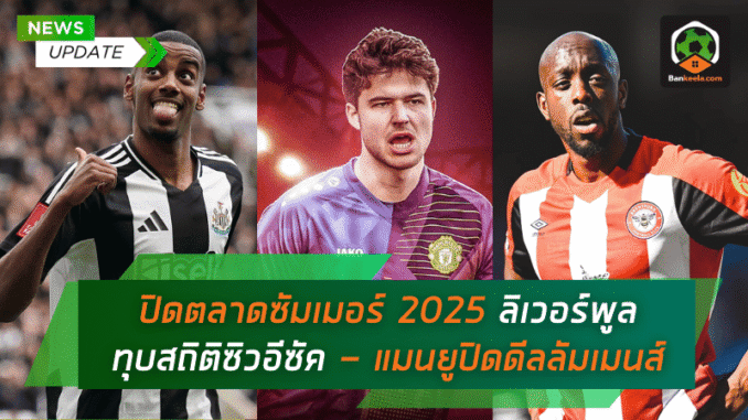 ลิเวอร์พูล กลายเป็นข่าวใหญ่ที่สุดในวันปิดตลาดเมื่อปิดดีล อเล็กซานเดอร์ อีซัค กองหน้าทีมชาติสวีเดนจาก นิวคาสเซิ่ล ยูไนเต็ด ด้วยค่าตัวมหาศาล 125 ล้านปอนด์ (ราว 5,500 ล้านบาท) กลายเป็นสถิติใหม่ของเกาะอังกฤษทันที โดยอีซัคจะสวมเสื้อหมายเลข 9 และเซ็นสัญญายาวถึงปี 2031 ทำให้แฟนหงส์แดงคาดหวังว่าเขาจะกลายเป็นตัวจบสกอร์ระดับพระกาฬในยุคใหม่ของทีม