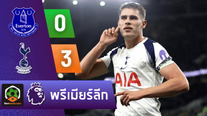ศึก พรีเมียร์ลีก อังกฤษ ค่ำคืนที่ผ่านมา กลายเป็นโชว์ของทีมเยือนเมื่อ ท็อตแน่ม ฮ็อทสเปอร์ บุกถล่มเอฟเวอร์ตันถึงถิ่นกูดิสัน พาร์ก 3-0 แบบไม่ไว้หน้า เกมนี้ “บ้านกีฬา” เกาะติด ผลบอลสด มาแบบช็อตต่อช็อต เห็นชัดว่าสเปอร์สมาเพื่อ 3 แต้มตั้งแต่นาทีแรก