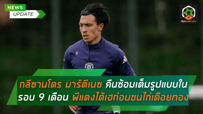สาวก แมนเชสเตอร์ ยูไนเต็ด ได้ข่าวดีให้ชื่นใจ เมื่อ ลีซานโดร มาร์ตีเนซ ปราการหลังพันธุ์ดุชาวอาร์เจนไตน์ กลับมาลงซ้อมร่วมทีมได้เต็มรูปแบบเป็นครั้งแรกในรอบกว่า 9 เดือนเต็ม หลังบาดเจ็บหนักจากอาการเอ็นไขว้หน้าฉีกตั้งแต่เดือนกุมภาพันธ์ที่ผ่านมา โดยคาดว่าเจ้าตัวอาจมีลุ้นมีชื่อในเกมบิ๊กแมตช์พบ ท็อตแน่ม ฮ็อทสเปอร์ เดือนพฤศจิกายนนี้