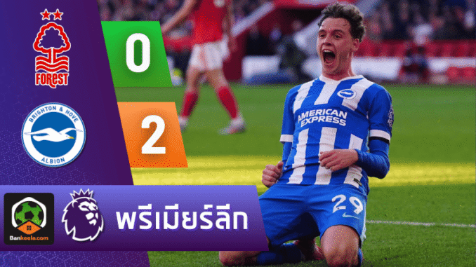 - ⏱️ ทดเจ็บ 7 นาทีในครึ่งหลัง ฟอเรสต์บุกหนักแต่ตีไข่แตกไม่ได้ จบเกมไบรท์ตันบุกชนะ 2-0