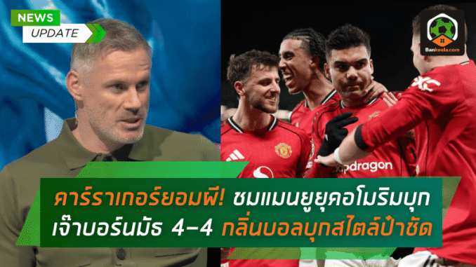 ศึก พรีเมียร์ลีก ที่สนาม โอลด์ แทร็ฟฟอร์ด ระหว่าง แมนเชสเตอร์ ยูไนเต็ด เปิดบ้านเสมอ บอร์นมัธ 4-4 กลายเป็นหนึ่งในเกมมันส์สุดเดือดของซีซั่น งานนี้ไม่ใช่แค่แฟนผีที่ลุกจากเก้าอี้ แต่แม้แต่คู่ปรับอย่าง เจมี่ คาร์ราเกอร์ ยังต้องออกมาชื่นชมว่าฟอร์มของ “ปีศาจแดง” ในเกมนี้ เล่นได้ดุดัน เร้าใจ และเต็มไปด้วยคาแรกเตอร์เกมบุกแบบที่แฟนบอลโหยหามานาน