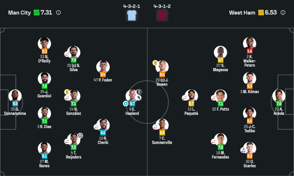- เออร์ลิง ฮาลันด์ – 8.7 (เหมาสอง, Player of the Match)