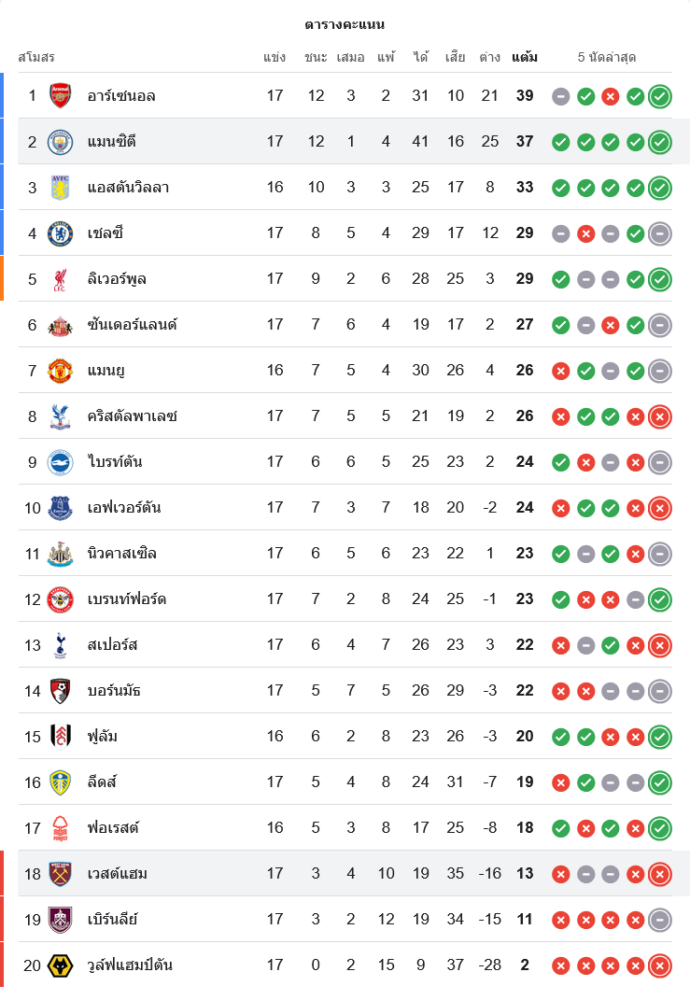 📈 สถานการณ์ในตารางคะแนนพรีเมียร์ลีก