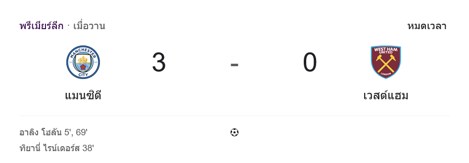 จาก : ผลบอลสด พรีเมียร์ลีก ระหว่าง แมนเชสเตอร์ ซิตี้ 3-0 เวสต์แฮมยูไนเต็ด วันนี้ 20/12/68 – บ้านกีฬา