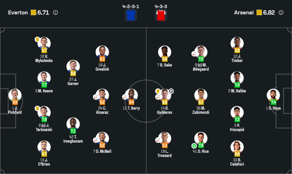 อย่างไรก็ตาม ถึงจะเปลี่ยนเกมรุกใส่เต็มที่ เจ้าถิ่นก็ยังเจาะแนวรับอาร์เซนอลไม่เข้า เกมริมเส้นทั้งสองข้างถูกบีบจนต้องเปิดบอลแบบไม่มีน้ำหนัก ขณะที่ทีมเยือนเปลี่ยนส่งกาเบรียล เชซุส, กาเบรียล มาร์ติเนลลี และมิเกล เมรีโน ลงมาใช้ประสบการณ์ช่วยพักบอลและดึงจังหวะ ทำให้ช่วงท้ายเกมเน้นควบคุมความเร็วและตั้งรับอย่างมีวินัย แม้จะมีใบเหลืองจากการถ่วงเวลาของไจอเคเรสและมาร์ติเนลลี แต่ก็แลกมากับสามคะแนนล้ำค่าที่กูดิสัน พาร์ก และจบลงด้วยชัยชนะหนึ่งลูกแบบไม่ต้องลุ้นเหนื่อยจนหายใจไม่ทั่วท้อง