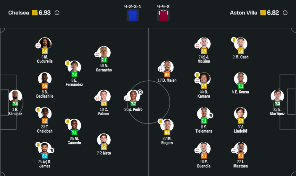 เกมรับวิลล่าอาจดูง่อนแง่นช่วงต้นจากแรงกดดันของเจ้าบ้าน แต่เมื่อ โอนาน่า ลงมายืนกลางรับเพิ่ม พวกเขาปิดช่องว่างระหว่างไลน์ได้ดีขึ้น บีบให้เชลซีต้องโยนมากกว่าตั้งเกมทะลุกลาง ซึ่งเข้าทาง คอนซ่า กับ ลินเดอเลิฟ ที่รับมือบอลโด่งได้ดี สุดท้ายเมื่อเจ้าบ้านเปิดหน้าบุกเต็มที่ พื้นที่ด้านหลังก็ยิ่งเปิดกว้างให้วัตกินส์ลงโทษแบบเลือดเย็น