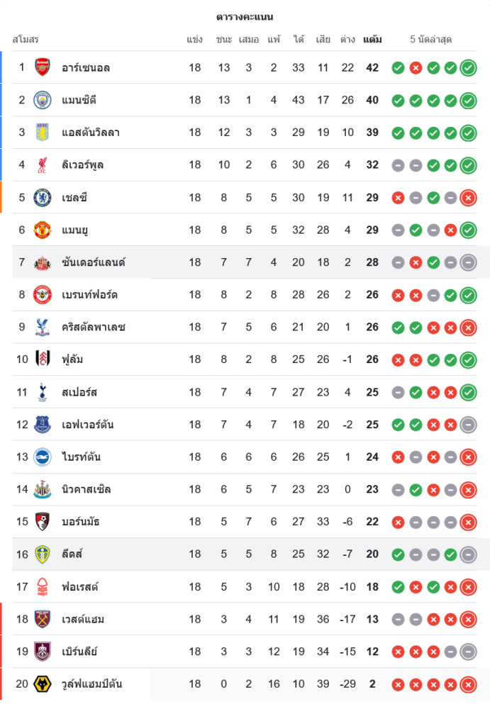 📈 สถานการณ์ในตารางคะแนนพรีเมียร์ลีก
