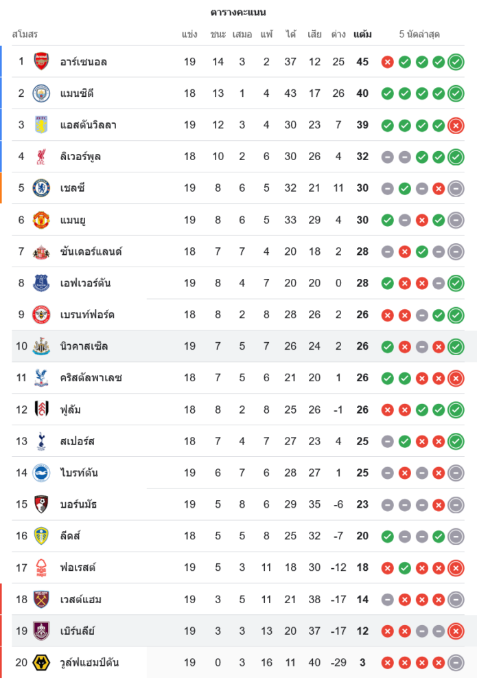 📌 สถานการณ์ในตารางคะแนนพรีเมียร์ลีก