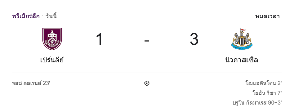 จาก : ผลบอลสด พรีเมียร์ลีก ระหว่าง เบิร์นลี่ย์ 1-3 นิวคาสเซิ่ล ยูไนเต็ด วันนี้ 31/12/68 – บ้านกีฬา