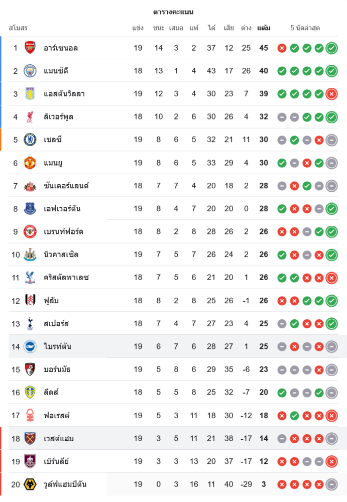 ส่วนไบรท์ตันเก็บเพิ่มเป็น 25 คะแนนจาก 19 นัด อยู่ที่อันดับ 14 ของตาราง สถิติ 6 ชนะ 7 เสมอ 6 แสดงให้เห็นว่าทีมยังมีเสถียรภาพพอสมควร แม้ผลงานช่วงหลังจะแกว่งไปบ้าง แต่แต้มจากเกมเยือนแบบนี้ช่วยให้พวกเขาเริ่มหายใจโล่ง ขยับหนีโซนล่างได้อีกนิด และถ้ารักษามาตรฐานการเล่นแบบวันนี้ได้ต่อเนื่อง มีโอกาสไล่จี้โซนบนของตารางในช่วงครึ่งฤดูกาลหลัง