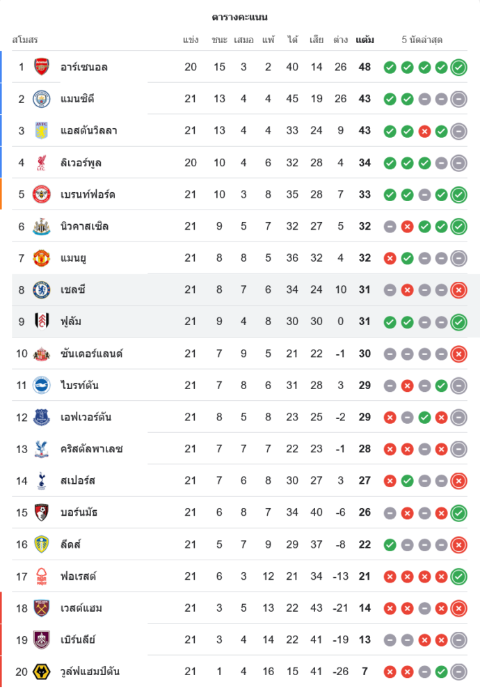 📌 สถานการณ์บนตารางคะแนนพรีเมียร์ลีก