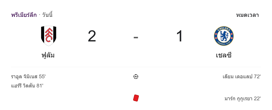 ค่ำคืนนี้ที่คราเวน ค็อตเทจ แฟนบอลที่ตามเช็ก ผลบอลสด คงสะดุ้งไปตามๆ กัน เมื่อฟูแล่มของมาร์โก ซิลวา เปิดบ้านรับเชลซีแล้วใส่กันยับตั้งแต่นาทีแรก ทั้งสปีดเกม ทั้งอารมณ์บนสนาม แบบบอลอังกฤษขนานแท้ ก่อนเจ้าถิ่นจะค่อยๆ ใช้ความได้เปรียบตัวผู้เล่นบดเอาชนะไป 2-1 ในศึกพรีเมียร์ลีกสุดเดือด