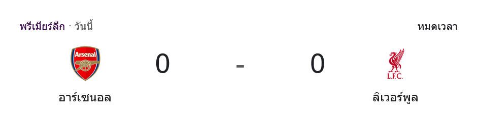 บิ๊กแมตช์พรีเมียร์ลีกที่เอมิเรตส์ สเตเดี้ยมจบลงแบบไม่มีประตู แต่ความดุเดือดจัดเต็มทั้ง 90 นาที อาร์เซนอลเปิดบ้านไล่บดลิเวอร์พูลแบบไม่เกรงใจจ่าฝูงร่วมลุ้นแชมป์ เกมนี้แฟนบอลที่เปิดเช็ก ผลบอลสด กันแบบวินาทีต่อวินาทีต้องลุกฮือทุกจังหวะลุ้น เพราะปืนใหญ่เดินหน้ากดดันตลอด ขณะที่หงส์แดงยืนระยะด้วยเกมรับแน่นและซูเปอร์เซฟของอลิสซอนจนเก็บหนึ่งแต้มกลับแอนฟิลด์ได้สำเร็จ