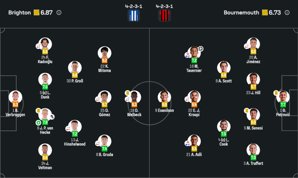 🐦 ไบรท์ตัน แอนด์ โฮฟ อัลเบียน (4-2-3-1, เรตติ้งเฉลี่ย 6.87)
