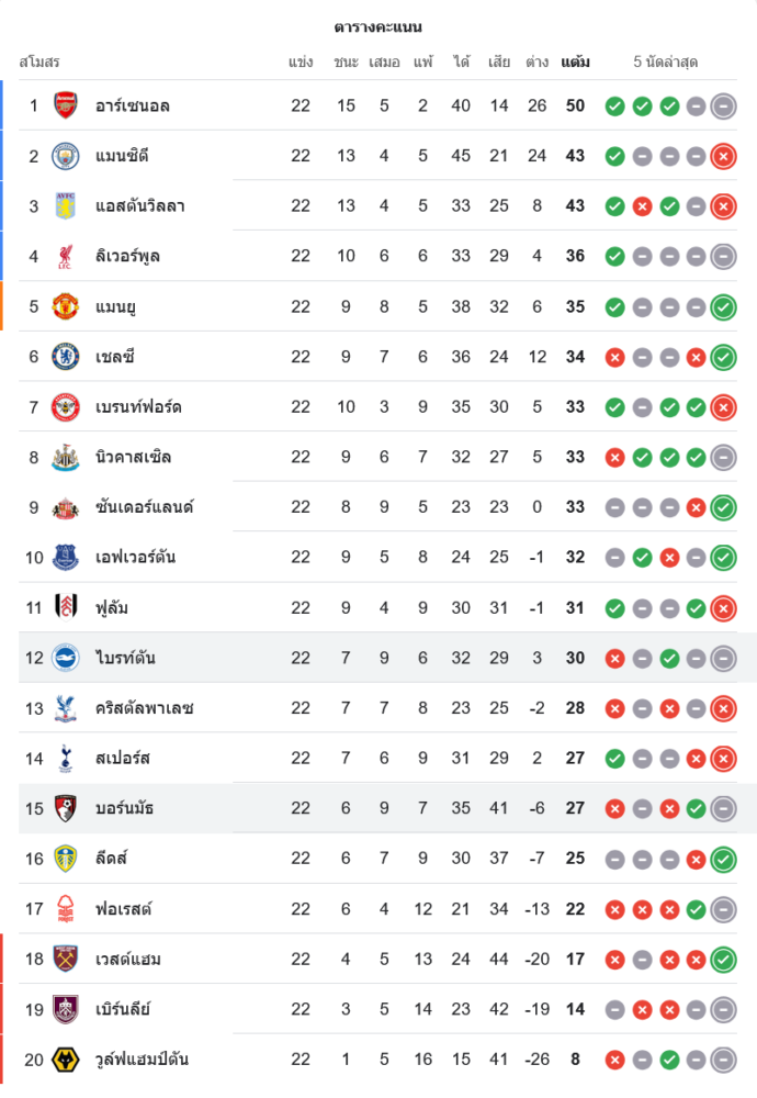 📈 สถานการณ์บนตารางคะแนนพรีเมียร์ลีก