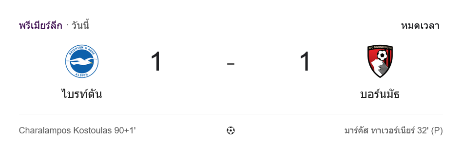 จาก : ผลบอลสด พรีเมียร์ลีก ระหว่าง ไบรท์ตัน 1-1 บอร์นมัธ วันนี้ 20/1/69 – บ้านกีฬา