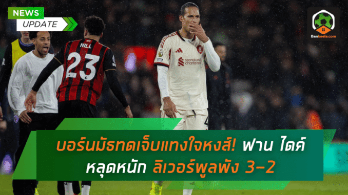 เกมที่แดนใต้นัดนี้กลายเป็นอีกหนึ่งคืนฝันร้ายของ ลิเวอร์พูล เมื่อผลงานไร้พ่าย 13 นัดต้องหยุดลงแบบเจ็บลึก แพ้ให้กับ บอร์นมัธ 3-2 ในช่วงทดเวลาบาดเจ็บ ทั้งที่รูปเกมโดยรวม “หงส์แดง” ไม่ได้ด้อยกว่า แต่ความผิดพลาดเฉพาะหน้า กลับกลายเป็นมีดเล่มใหญ่ที่หันมาฟันตัวเอง