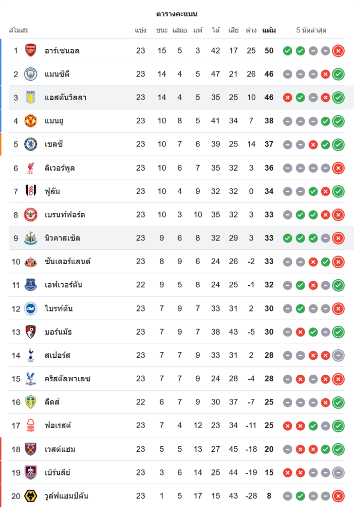 📈 สถานการณ์ในตารางคะแนนพรีเมียร์ลีก