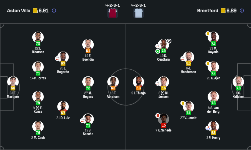 ดองโก วาตารา ปีกขวาความเร็วจัดของเบรนท์ฟอร์ด ได้รางวัล Player of the match แบบไม่มีใครเถียง คะแนนสูงลิ่ว 7.9 และเป็นคนยิงประตูชัยสุดคมในช่วงทดเจ็บครึ่งแรก ทั้งที่ทีมเหลือ 10 คนก่อนหน้าไม่กี่นาที ตลอดเวลาที่อยู่ในสนาม วาตาราใช้สปีดฉีกแนวรับวิลล่าหลายครั้ง ถือบอลสวนกลับได้เนียนทั้งลากตัดเข้าในและดึงฟาวล์ ช่วยให้ทีมได้พักหายใจในจังหวะที่โดนบุกหนัก เป็นภาพชัดเจนของนักเตะที่ “ใช้โอกาสครั้งเดียวเปลี่ยนเกม” อย่างแท้จริง