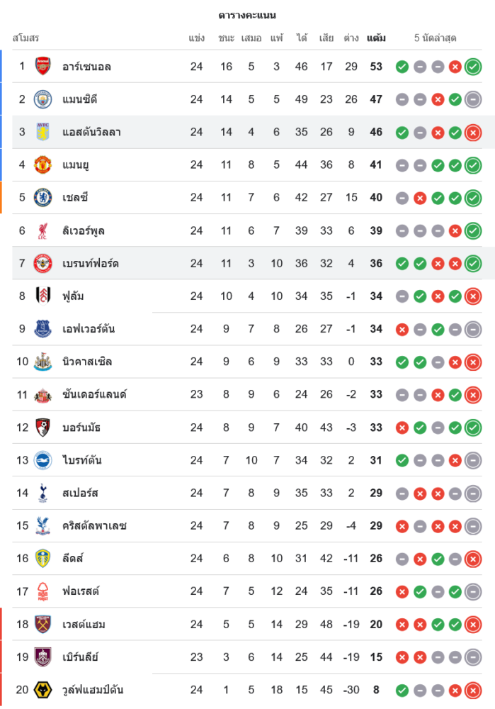 ฝั่งเบรนท์ฟอร์ดเพิ่มเป็น 36 คะแนนจาก 24 นัด ผลงานชนะ 11 เสมอ 3 แพ้ 10 ประตูได้เสีย +4 ขยับยึดอันดับ 7 แน่น ๆ ยังเกาะกลุ่มลุ้นพื้นที่ฟุตบอลยุโรปต่อไป และสำคัญมากคือเกมนี้ช่วยเรียกความมั่นใจกลับมา หลังจากก่อนหน้าออกอาการสะดุดให้เห็นอยู่บ้าง