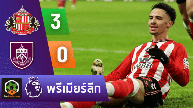 พรีเมียร์ลีก อังกฤษ ค่ำคืนนี้แฟนแมวดำที่สเตเดี้ยมออฟไลท์ได้เฮลั่นทั้งเมือง เมื่อซันเดอร์แลนด์เปิดบ้านไล่บดเบิร์นลีย์แบบหมดรูป 3-0 เกมนี้แฟนที่ตามเช็ก ผลบอลสด และรายงานจาก บ้านกีฬา เห็นภาพชัดเจนว่าเจ้าถิ่นมาเน้นรัดกุมแต่โหดคมทุกจังหวะ ในขณะที่ทีมเยือนครองบอลมากกว่าแต่แทบไม่มีพิษสงให้ลุ้นประตูเลย