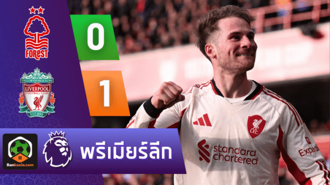 บ้านกีฬา ขอสรุป ผลบอลสด เกมพรีเมียร์ลีก อังกฤษ ที่เล่นกันแบบอึดอัดแต่เดือดจัด น็อตติ้งแฮม ฟอเรสต์ โดน ลิเวอร์พูล ปิดบัญชีช่วงทดเวลา 90+7 จาก อเล็กซิส แม็ค อัลลิสเตอร์ จบเกม ฟอเรสต์ 0-1 ลิเวอร์พูล ชนิดที่ทั้งสนามแทบหยุดหายใจ