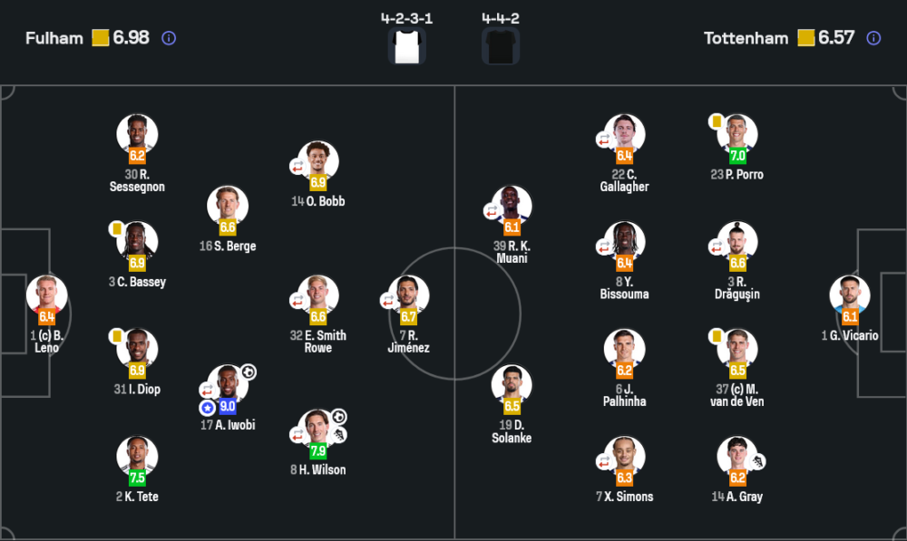 อเล็กซ์ อิโวบี้ คือคนที่ทำให้เกมนี้เอียงข้างแบบชัด ๆ คะแนน 9.0 ไม่ได้มาจากแค่ประตูสุดสวยนอกกรอบ แต่มาจากการพาบอลพาเกมของฟูแล่มให้เดินไปข้างหน้า เขาเล่นเหมือนคนคุมจังหวะของสนาม ทั้งการหาพื้นที่ การตัดสินใจจ่าย และการเร่งเกมในช่วงที่สเปอร์สเริ่มกดดันหนัก จังหวะยิง 2-0 คือความต่างของเกมนี้ และเป็นประตูที่ทำให้ฟูแล่มมีทุนพอจะต้านจนจบ