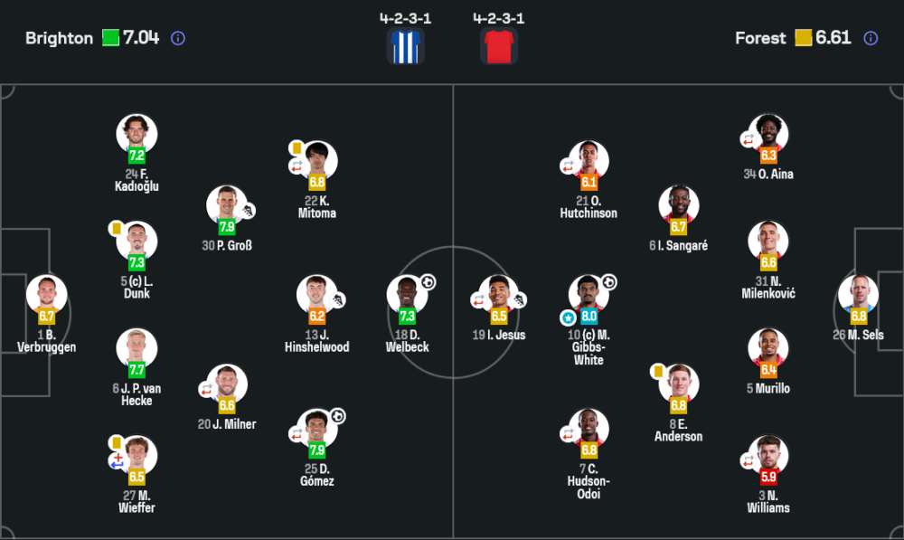 - Carlos Baleba ลงมาแทน James Milner นาที 86 คะแนน 6.7