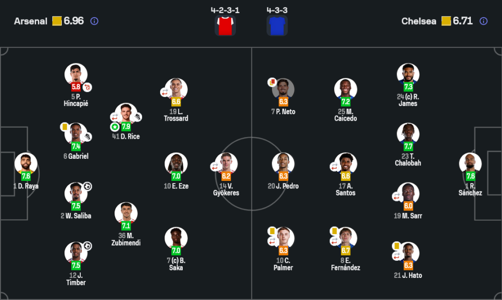 เดแคลน ไรซ์ คือคนที่ทำให้เกมนี้เป็นของอาร์เซนอลแบบเต็มมือ คะแนน 7.9 มาจากความครบเครื่องทั้งคุมจังหวะ ตัดเกมกลางสนาม และที่เด็ดสุดคือเปิดลูกเตะมุมให้ทิมเบอร์โหม่งประตูชัย จังหวะอ่านเกมของเขาทำให้ปืนใหญ่ไม่ตื่นตอนเชลซีกดหนักครึ่งหลัง พอถึงเวลาต้องปิดเกม ไรซ์คือคนที่พาเกมนิ่งลงได้จริง