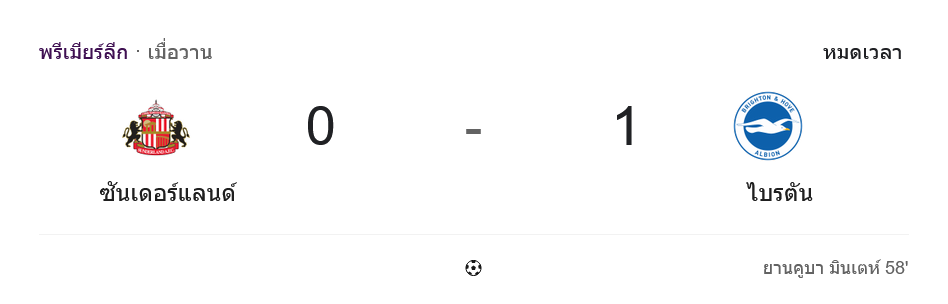 รูปเกมโดยรวม ซันเดอร์แลนด์ไม่ได้เป็นรองมากนัก พวกเขาเปิดเกมด้วยความกล้า บีบเร็ว และพยายามใช้ลูกตั้งเตะกดดันแนวรับทีมเยือน ขณะที่ไบรท์ตันเล่นด้วยความนิ่งกว่า คุมจังหวะได้ดีกว่า และฉวยโอกาสในช่วงสำคัญได้เฉียบคมกว่า นั่นคือความต่างที่ตัดสิน บ้านผลบอล นัดนี้