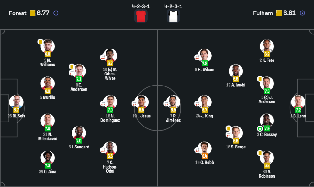 ฟอเรสต์มาในระบบ 4-2-3-1 และชัดเจนว่าต้องการเล่นเกมบุกมากกว่า พวกเขาใช้การเติมของฟูลแบ็กและการยิงไกลเป็นอาวุธสำคัญ จังหวะเปลี่ยนจากรับเป็นรุกทำได้เร็ว และหลายครั้งสร้างปัญหาให้แนวรับฟูแล่มได้ชัดเจน
