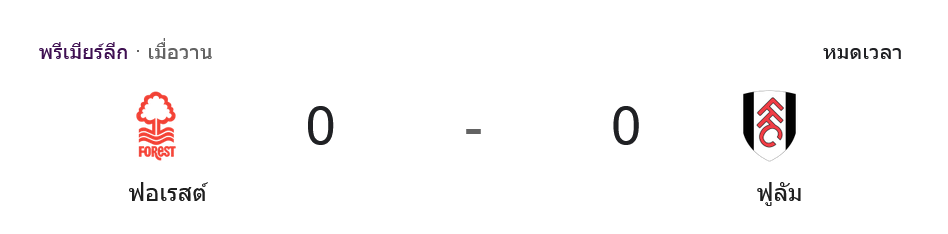 ศึก พรีเมียร์ลีก อังกฤษ คู่นี้ไม่มีประตู แต่ความเดือดตลอดเกมถือว่าเข้มข้นไม่น้อย น็อตติ้งแฮม ฟอเรสต์ เปิดบ้านเสมอ ฟูแล่ม 0-0 ในเกมที่เต็มไปด้วยจังหวะปะทะ การแก้เกม และดราม่า VAR ที่กลายเป็นจุดเปลี่ยนสำคัญ โดยเฉพาะฝั่งเจ้าถิ่นที่เกือบได้เฮจาก ดาน เอ็นดอย แต่สุดท้ายโดนริบประตูคืน ทำให้เกมนี้จบลงด้วยการแบ่งแต้มกันไปแบบอึดอัด และส่งผลต่อสถานการณ์ ผลบอลสด ในโซนล่างของตารางอย่างชัดเจน