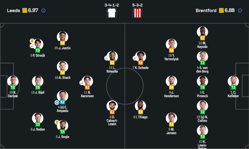- นาที 83 Daniel James ลงแทน Pascal Struijk ได้คะแนน 6.9
