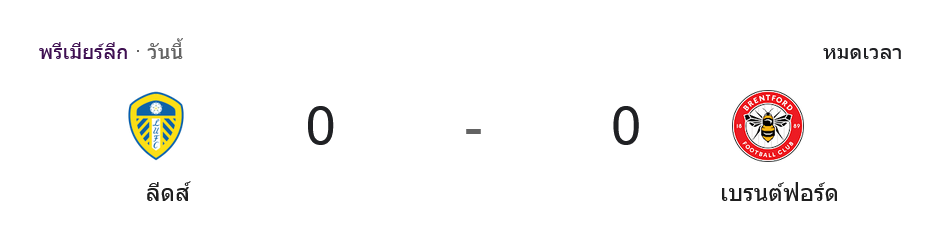 ศึก พรีเมียร์ลีก อังกฤษ คู่นี้จบลงแบบไม่มีฝ่ายไหนได้เฮ หลังลีดส์ ยูไนเต็ด เปิดบ้านเสมอ เบรนท์ฟอร์ด 0-0 ในเกมที่เข้มข้นและตึงมือกว่าที่สกอร์บอก แม้ไม่มีประตู แต่รูปเกมไม่ได้จืด เพราะทั้งสองทีมมีช่วงของตัวเองชัดเจน และมีจังหวะลุ้นหลายครั้ง โดยเฉพาะครึ่งหลังที่เจ้าถิ่นเร่งเครื่องหนัก สุดท้ายต้องแบ่งกันไปทีมละแต้มในเกม ผลบอลสด ที่วัดกันด้วยความละเอียดและวินัยล้วน ๆ