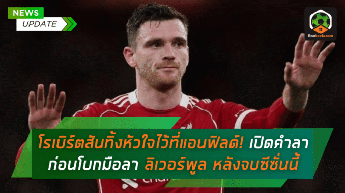 แอนดรูว์ โรเบิร์ตสัน แบ็กซ้ายจอมบู๊ชาวสกอตแลนด์ของ ลิเวอร์พูล ออกมาเปิดใจแบบหมดเปลือก หลังยืนยันชัดเจนว่าเขาจะอำลาทัพ “หงส์แดง” อย่างแน่นอนเมื่อหมดสัญญาในช่วงซัมเมอร์นี้ ปิดฉากเส้นทาง 9 ปีที่เต็มไปด้วยความทรงจำ ความสำเร็จ และความผูกพันอันลึกซึ้งกับถิ่นแอนฟิลด์