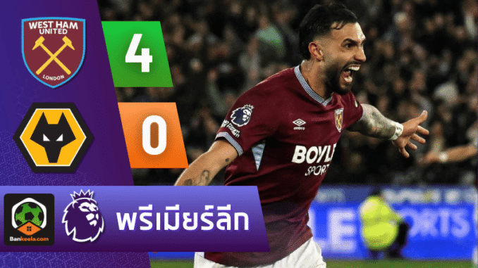 ศึก พรีเมียร์ลีก อังกฤษ เกมนี้จบแบบแฟนเจ้าถิ่นสะใจเต็มอารมณ์ เมื่อ เวสต์แฮม เปิดบ้านถล่มวูล์ฟแฮมป์ตัน 4-0 ชนิดเหนือกว่าชัดเจนทั้งความเด็ดขาดและวินัยเกมรับ โดย ผลบอลสด คู่นี้ส่งผลสำคัญต่อการหนีโซนอันตรายของเจ้าบ้านโดยตรง