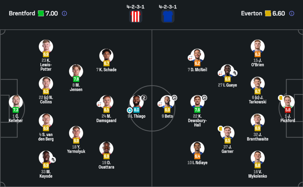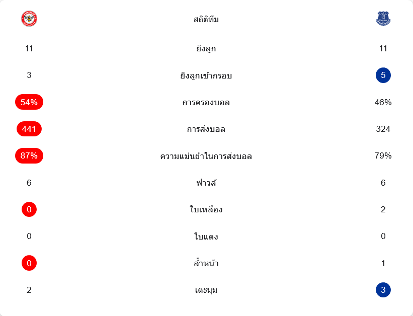 ฝั่งเอฟเวอร์ตันก็ยืน 4-2-3-1 เหมือนกัน แต่เน้นความอดทนและรอจังหวะสวนกลับมากกว่า เบโต้ ทำหน้าที่ค้ำหน้าได้ดี ขณะที่ เกย์ และ ดิวส์บิวรี ฮอลล์ มีบทบาทกับเกมรุกมาก โดยเฉพาะประตูตีเสมอท้ายเกมที่สะท้อนให้เห็นว่าเอฟเวอร์ตันอาจไม่ได้ครองเกมมากกว่า แต่มีความคมและไม่ยอมแพ้ง่าย ๆ ในมุม วิเคราะห์บอล ถือว่าเป็นเกมที่เบรนท์ฟอร์ดเหนือกว่าในรูปเกม แต่เอฟเวอร์ตันเด็ดขาดกว่าในจังหวะชี้ขาด