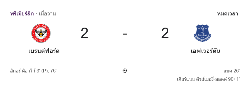 จาก : ผลบอลสด พรีเมียร์ลีก อังกฤษ ระหว่าง เบรนท์ฟอร์ด 2-2 เอฟเวอร์ตัน วันนี้ 11/4/69 – บ้านกีฬา