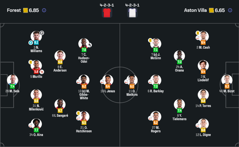 ฟอเรสต์เล่นเกมรุกได้ชัดเจนกว่าในหลายช่วง โดยเน้นขึ้นทางริมเส้นและหาจังหวะยิงจากแถวสอง เนโก วิลเลียมส์คืออาวุธสำคัญทั้งในเกมเติมและจังหวะจบสกอร์ ส่วน Hudson-Odoi กับ Gibbs-White มีบทบาทในการเชื่อมเกมและเปิดพื้นที่ให้เกมรุกของเจ้าถิ่นดูไหลลื่น