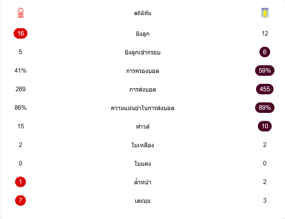 ฝั่งวิลล่ามีจุดเด่นที่เกมเปลี่ยนจากรับเป็นรุก ทำได้เร็วและมีพิษสง John McGinn กับ Morgan Rogers สร้างปัญหาให้แนวรับเจ้าถิ่นได้พอสมควร แต่จังหวะจบยังไม่เฉียบพอ ขณะที่เกมรับของทีมเยือนรับแรงกดดันได้ดีในระดับหนึ่ง ทว่ายังปล่อยพื้นที่หน้ากรอบให้ฟอเรสต์เล่นงานหลายครั้ง ซึ่งเป็นจุดที่เห็นชัดในมุม วิเคราะห์บอล หลังเกมนี้