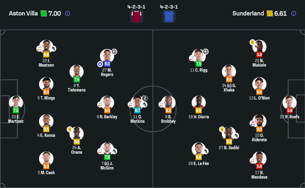 มอร์แกน โรเจอร์ส คือคนที่สร้างความแตกต่างให้วิลล่าชัดที่สุด เขายิง 1 ประตู ขยับหาพื้นที่เก่ง เชื่อมเกมรุกได้ลื่น และเป็นตัวปั่นป่วนแนวรับซันเดอร์แลนด์ตลอดทั้งเกม คะแนน 9.0 สะท้อนได้ตรงที่สุดว่าเขาคือหัวใจของชัยชนะนัดนี้