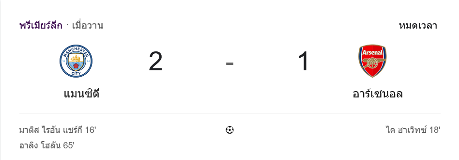 ช่วงท้ายเกมอาร์เซนอลพยายามเร่งเต็มที่ มีทั้งการเปลี่ยนตัวเติมเกมรุกและดันไลน์สูง แต่แนวรับของซิตี้ยังเอาอยู่ แม้เกมจะเริ่มเดือดจนมีใบเหลืองฝั่งละใบในจังหวะปะทะของ กาเบรียล กับ ฮาลันด์ สุดท้าย บ้านผลบอล คู่นี้จบลงด้วยชัยชนะของแมนซิตี้แบบสะใจแฟนเจ้าถิ่น
