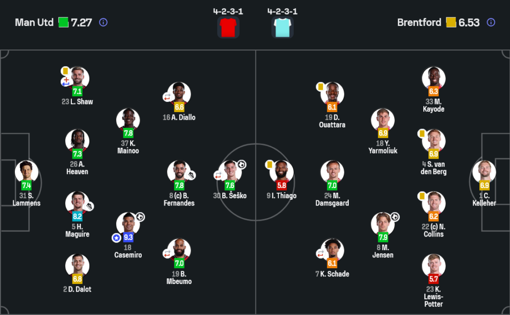 • นักเตะเด่น : คาเซมิโร่ 9.3, แฮร์รี่ แม็กไกวร์ 8.2, บรูโน่ แฟร์นันด์ส 7.8