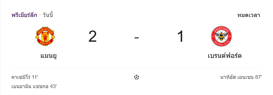 จาก : ผลบอลสด พรีเมียร์ลีก อังกฤษ ระหว่าง แมนยูไนเต็ด 2-1 เบรนท์ฟอร์ด วันนี้ 28/4/69 – บ้านกีฬา