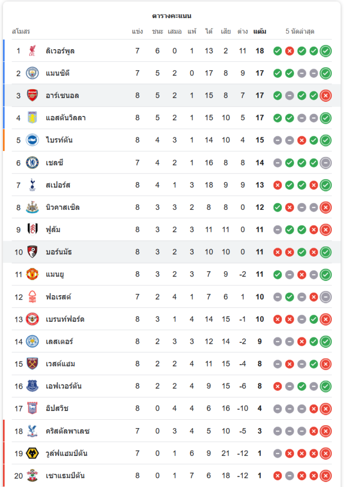 สถานการณ์ในตารางคะแนน